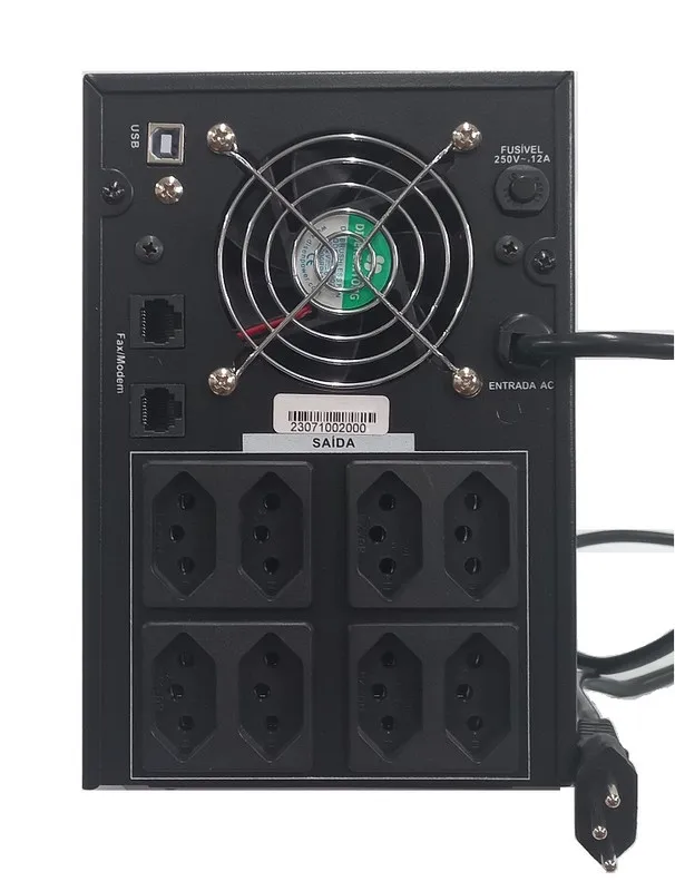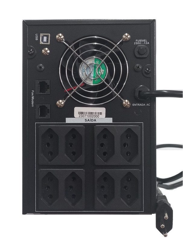 Proteções: surtos tensão, curto-circuito, sobrecarga, variação de frequência, subtensão, sobretensão, spikes, flicker, blackout, brownout, sag, swell, descarga das baterias, ruído, sobreaquecimento, descarga mínima de bateria;